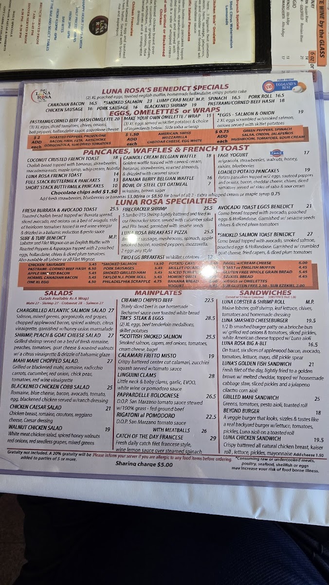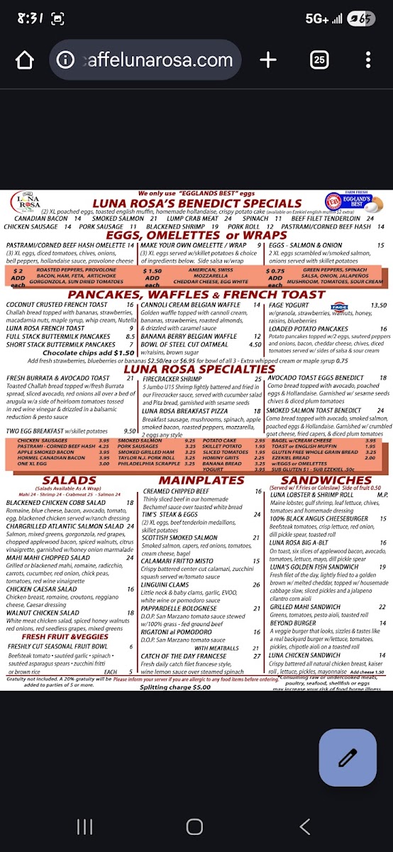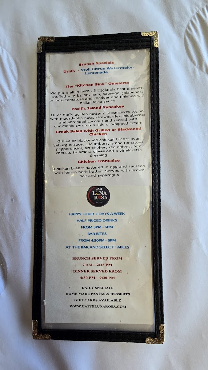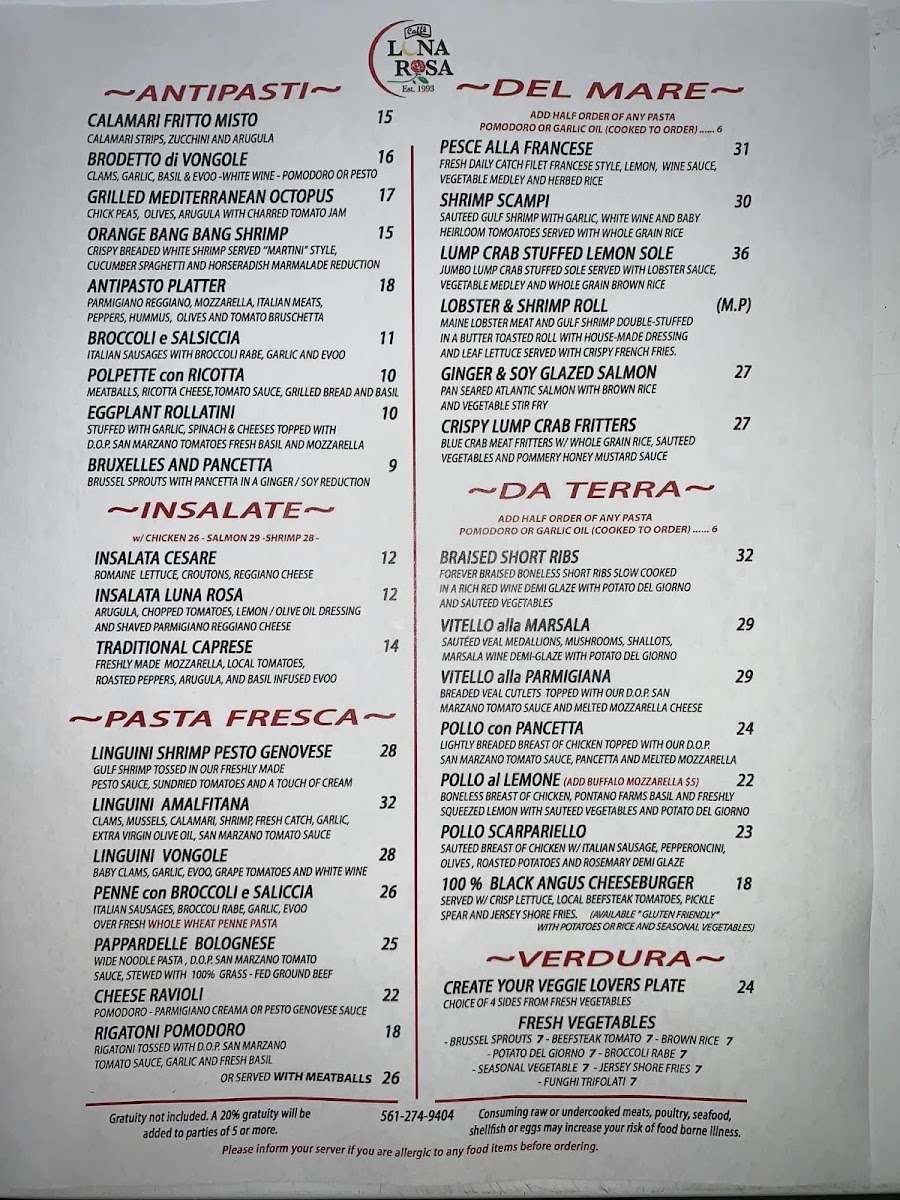 Caffe Luna Rosa Menu